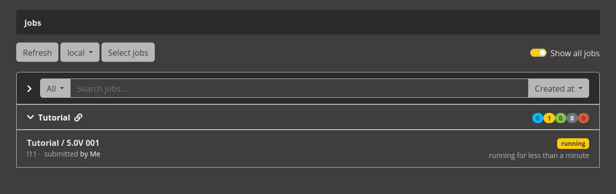 You can go to the Jobs page in the web interface to see the status of your ongoing simulations.