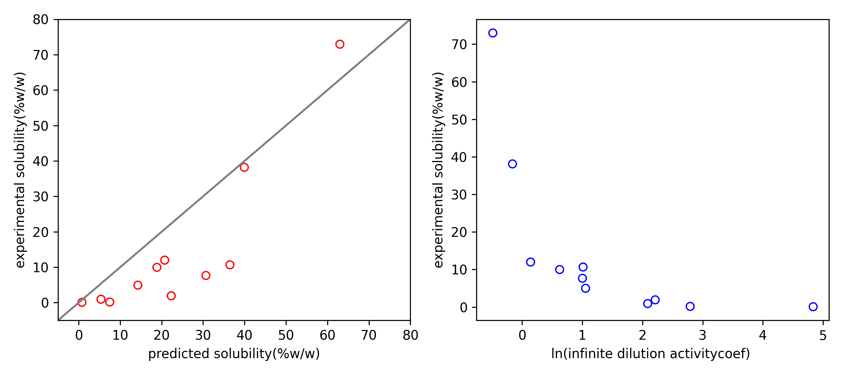 axs[0].set_xlabel("predicted solubility(%w/w)")