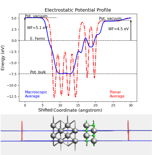 PESScantask in combination with the Quantum ESPRESSO engine. It performs a series of geometry optimization calculations while systematically varying the cell volume of MgO.The density of states (DOS) and band structure are calculated for each volume.