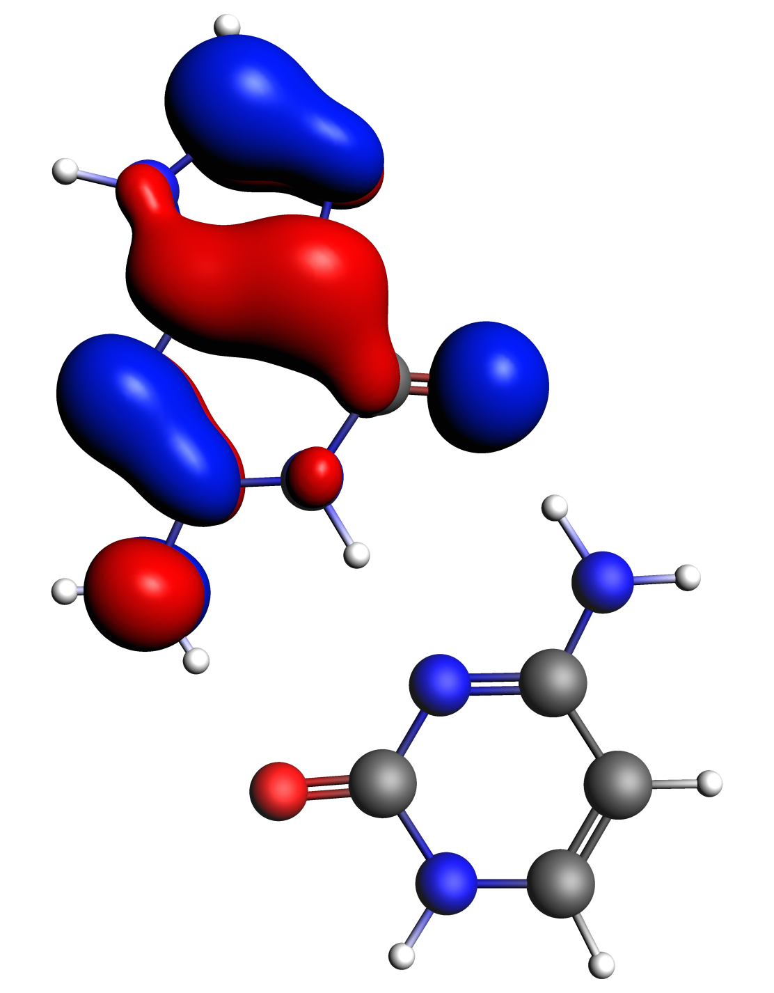 If one right-clicks on the HOMO level of Guanine-Cytosine, and select 49, then a new AMSview window will appear which will show the HOMO.