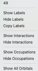 One can also right-click on atomic fragment orbital levels, and select one of the SFOs. SFO means symmetrized fragment orbital, which for DFTB is the same as a fragment orbital (FO), since DFTB does not use symmetry. Furthermore, in case of atomic fragments the FOs are in fact atomic orbitals.