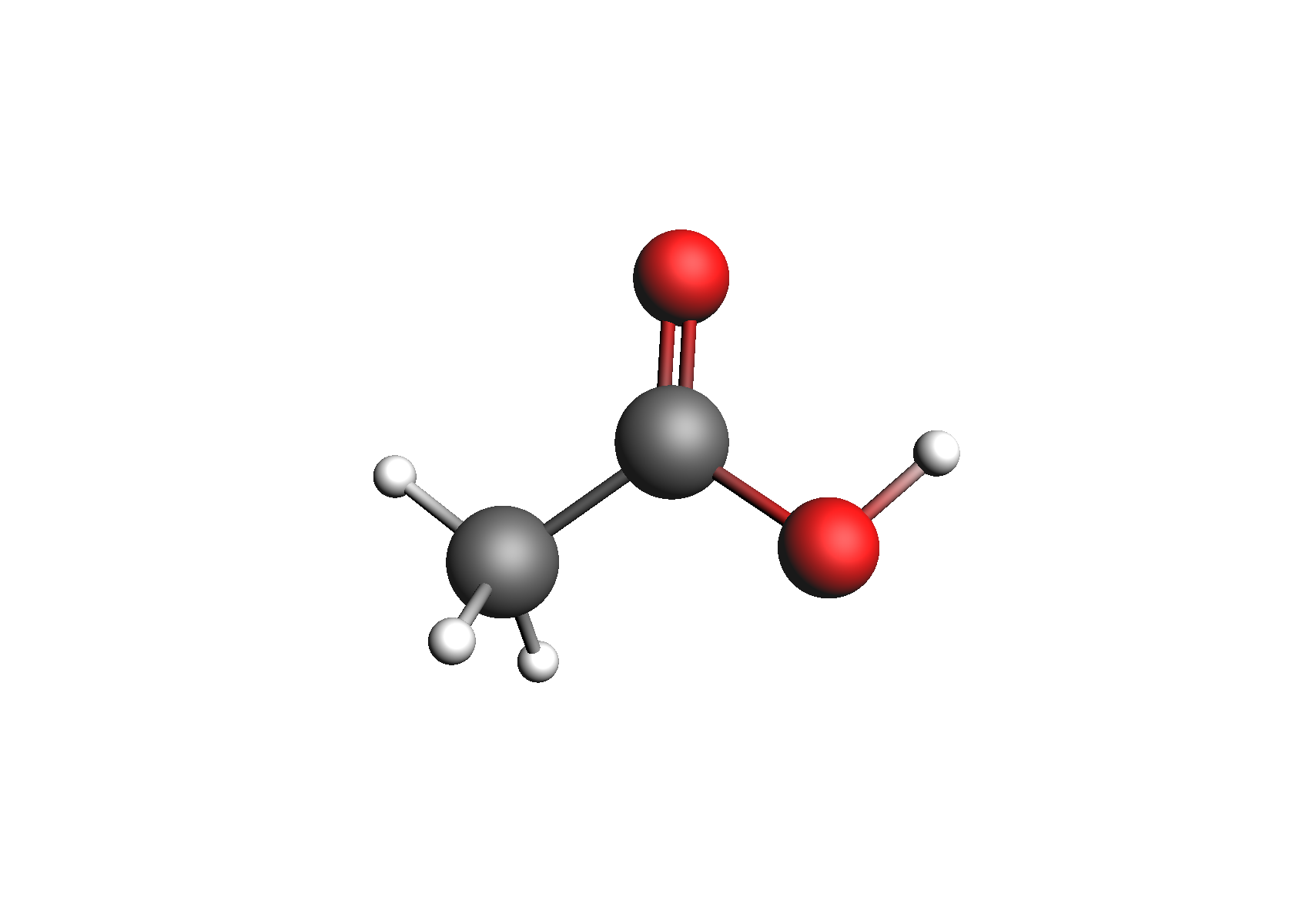 Structures used to represent acetic acid: lowest energy conformer, higher energy conformer, and dimer (clockwise from top left)