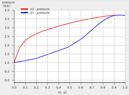 Isothermal calculation of Acetone(1) and Water(2) at 373.15K