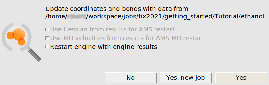 To actually perform the calculation (the geometry optimization of the ethanol molecule), use the Job → Run menu command in AMSjobs: