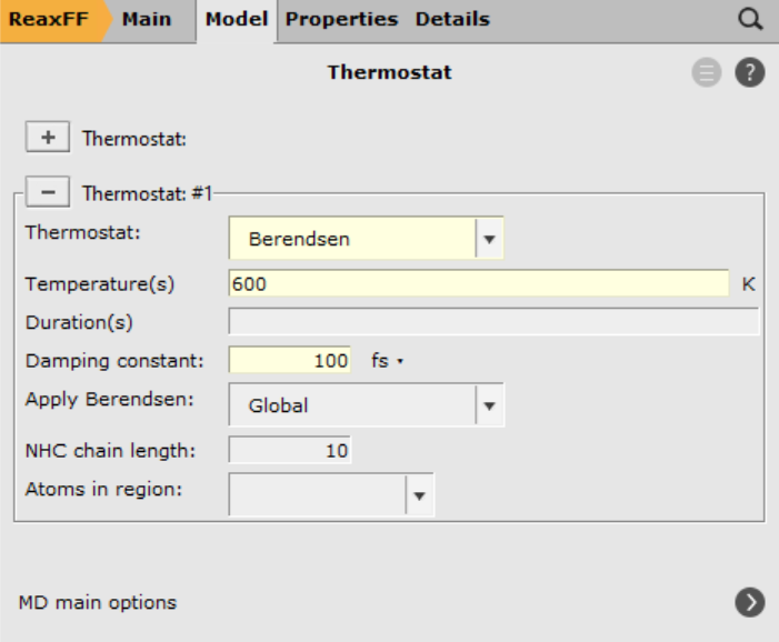 And finally, define the thermostat and start the calculation.