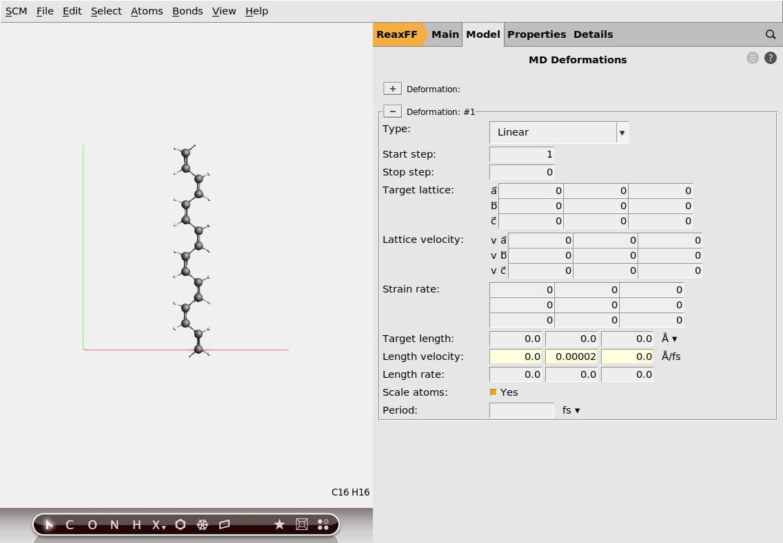 Next, we have to set up the deformation so that the chain is stretched during the simulation.