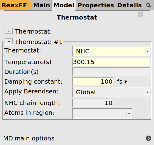 next to Thermostat and add a Thermostat300.15 K100.0 fs