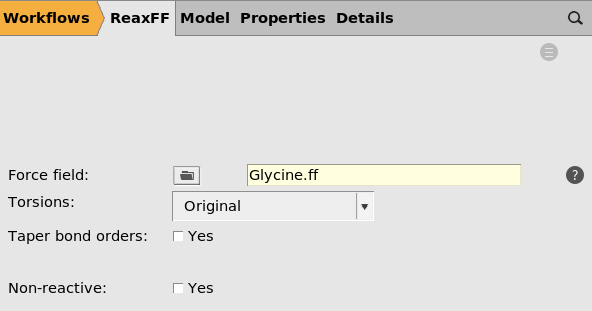 Here you can see that the Engine is set to ReaxFF 1. In this tutorial, we will use ReaxFF, but you can also change it to a different engine. Keep in mind that the simulations can be quite computationally expensive, so it’s best to use a fast compute engine.