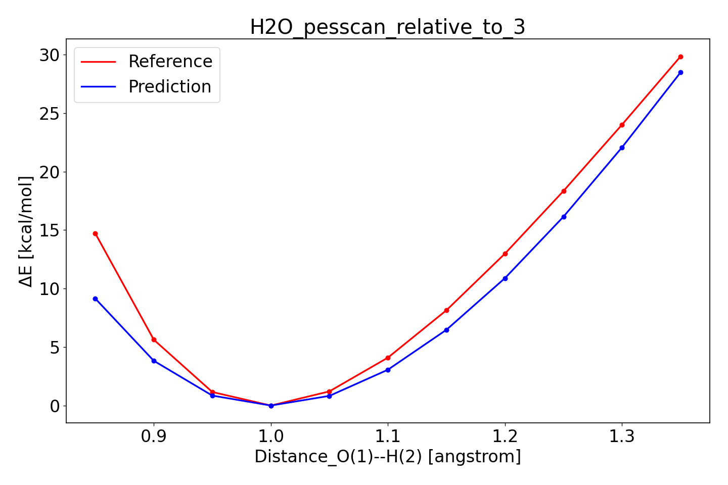 This plots the file optimization/training_set_results/best/pes_predictions/H2O_pesscan_relative_to_3.txt.