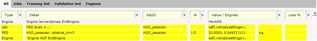 H2O_pesscanto the Job Collection. It has task PESScan, with settings taken from the reference pes scan job (which bond to scan, the number of points to sample, etc.).A training set of type PES with the detail
