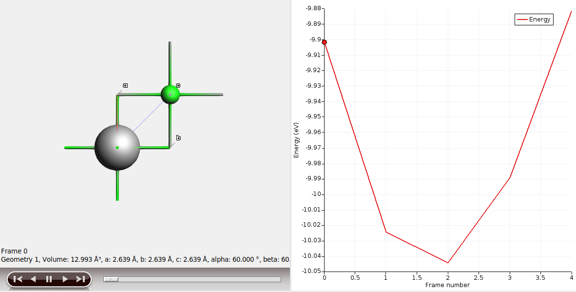 When the calculation has finished, see the energy as a function of volume by either