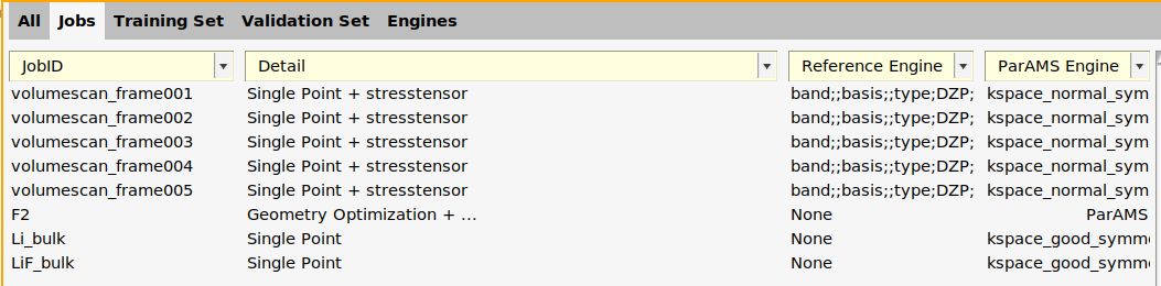 LiF_bulk and Li_bulk jobs. Select the jobs, double-click in the Details column, create a new ParAMS engine, set K-space grid type to Symmetric and the Quality to Good. Name the engine kspace_good_symmetric.The function add_engines in generate_input_files.py adds two new engines to the Engine Collection: