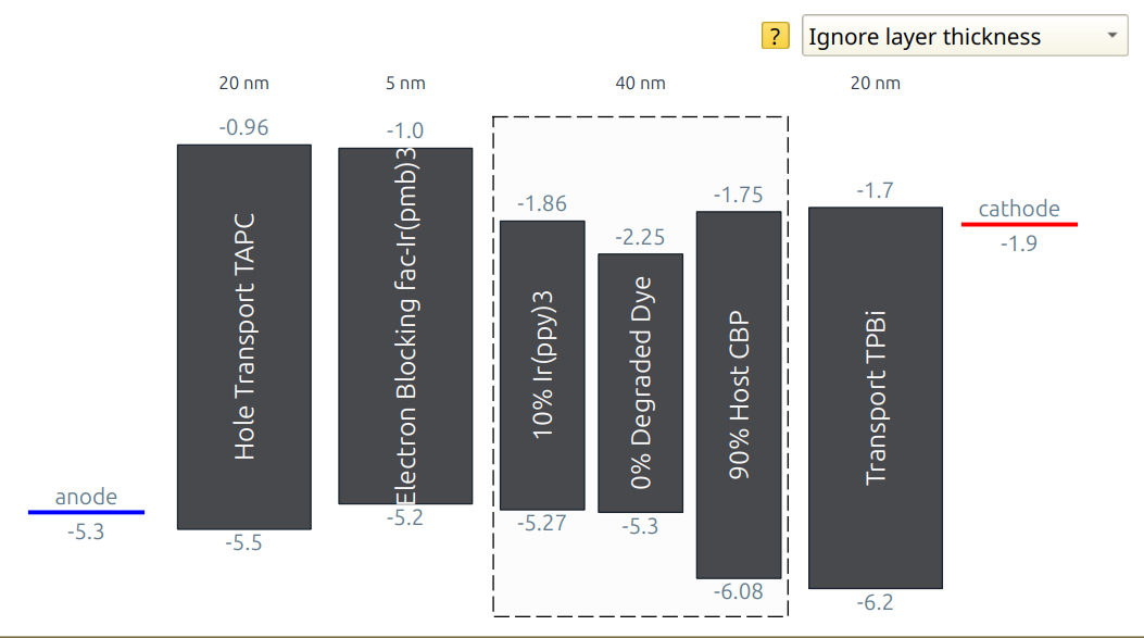 Add the degraded Ir(ppy)3 material with a fraction of 0 to make it accessible for degradation simulations