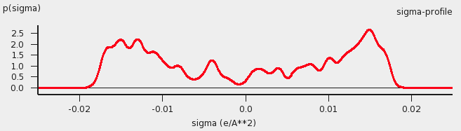 \(\sigma\)-profile of water (picture made with the CRS-GUI), smoothed curve, Delley COSMO surface construction