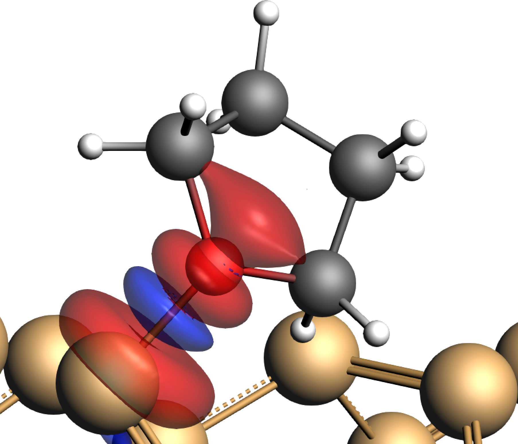 Due to the elecrophile character of Sidown we can expect a dative bond between the THF O-atom and this site.
