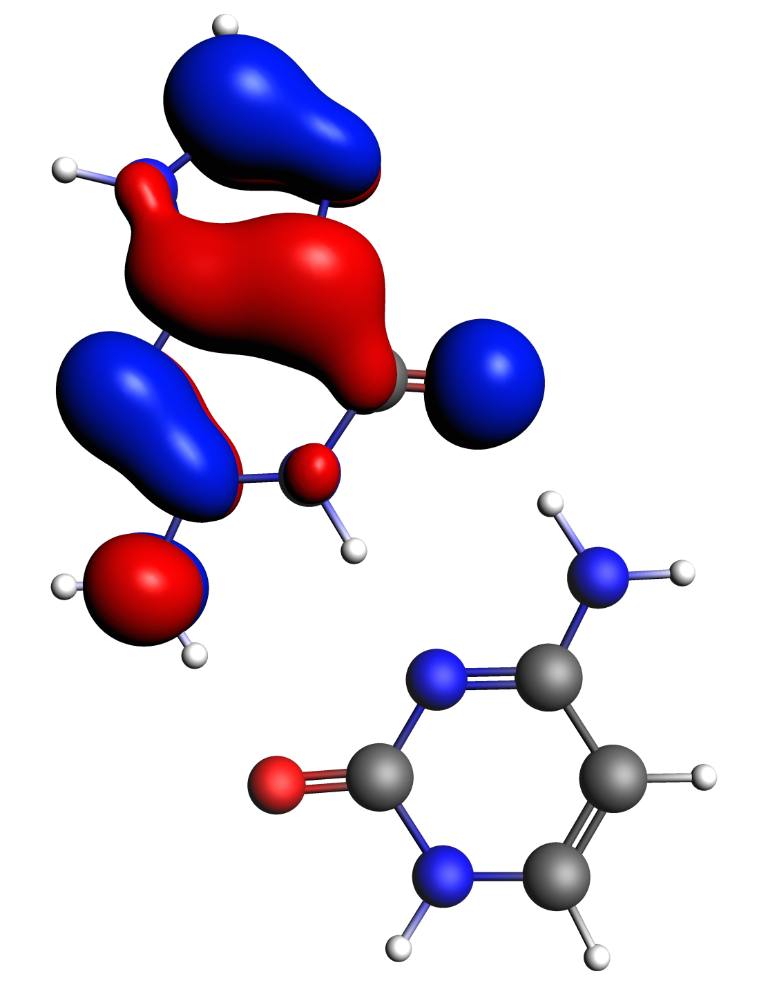 If one right-clicks on the HOMO level of Guanine-Cytosine, and select 49, then a new AMSview window will appear which will show the HOMO.