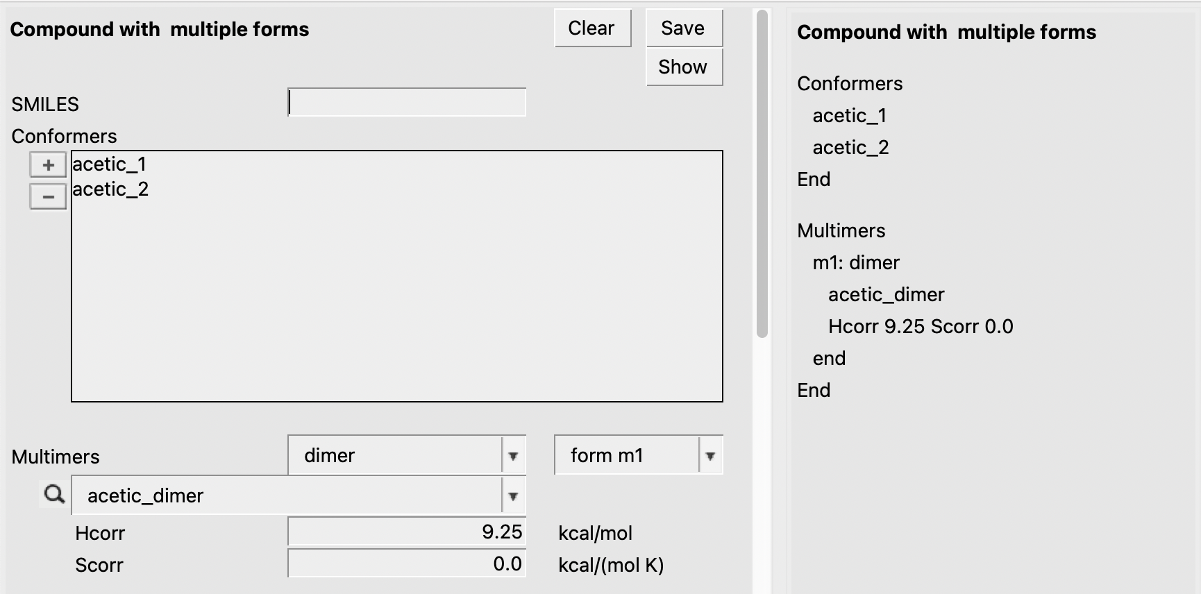 The multi-species compounds input is used to organize information about a compound that can exist in multiple forms. It can be accessed in the COSMO-RS GUI with a single step: