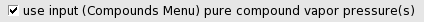 A binary mixture is calculated with input data for the pure compound vapor pressures. These can be, for example, experimentally observed pure compound vapor pressures. Note that the calculated partial and total vapor pressures will now depend on these input pure compound vapor pressures.