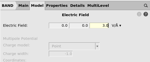 At a field of 3 Volt/Angstrom and some tweaking (You can change these features by opening the details by clicking the arrow in front of Plane: Colored)