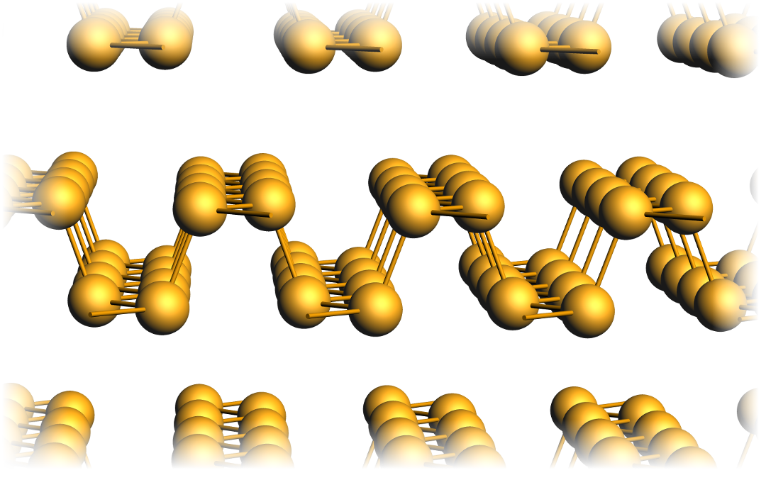 Note the pronounced grooves in each layer along the so-called zig-zag direction. Electrons traveling along this direction are subject to vastly different interactions than when traveling along the orthogonal armchair direction, across the grooves. This naturally leads to very anisotropic electronic properties, which will be examined in this tutorial.