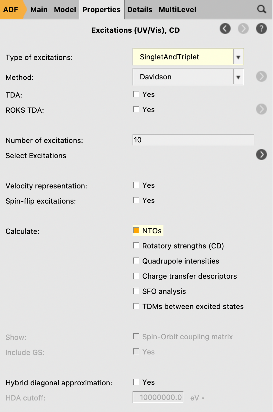 The composition of the excitation in terms of orbital transitions is listed on the right side. In many cases you can visualize relevant orbitals or NTOs with AMSview by clicking on them in the window on the right. The active items are visually marked. You can rotate the view by left-clicking and moving your mouse.