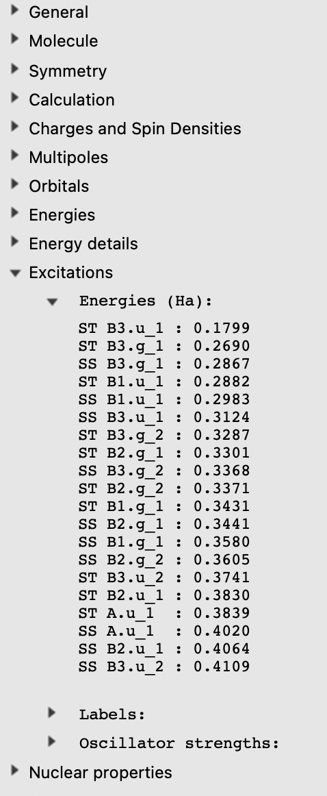 should then appear - click it to update the coordinatesCalculate the excitation energies¶