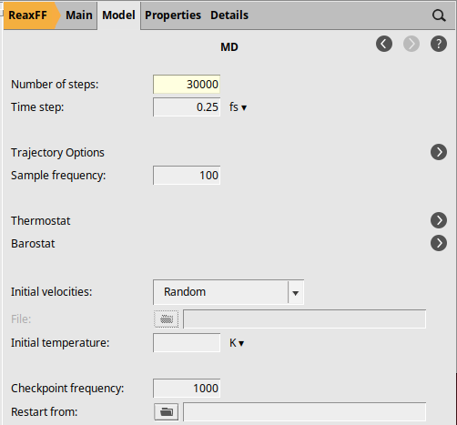 Remark: if you did not create the amorphous structure yourself, but instead used the (already-relaxed) amorphous structure from the downloaded .xyz file, then first you may need to start AMSinput, select ReaxFF, and select the LiS.ff force field, and in one of the next steps you may need to add a new thermostat.