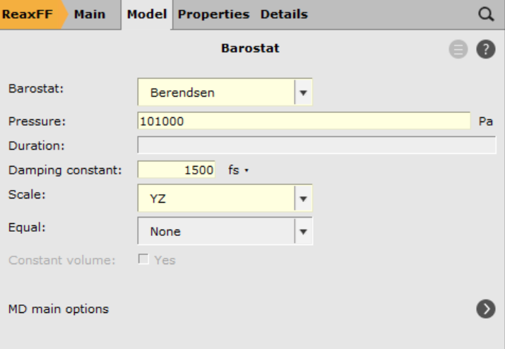 next to Barostat101000 Pa and the Damping constant to 1500 fs