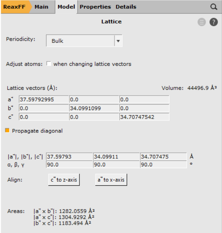 The length of the a-lattice vector a (\(\mid\vec{a}\mid\)) is found to be 37.59793 Å. The endpoint, after stretching it 10%, will then be 41.36 Å. To define this strain, change to the MD deformation panel