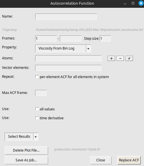 Check out the PLAMS example for calculating the viscosity with Green Kubo.