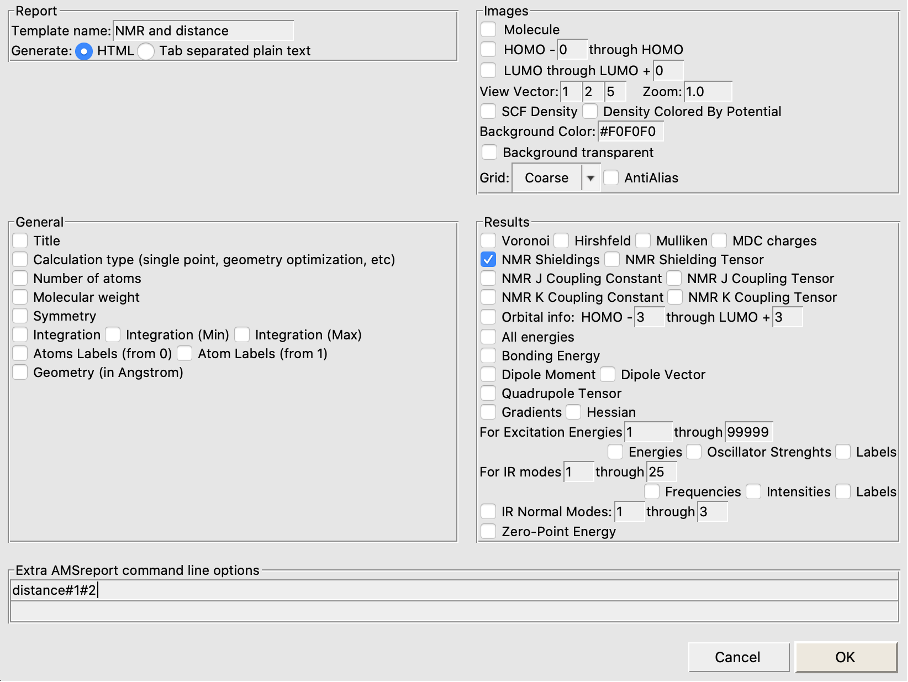 You will get an html file reporting all distances and NMR chemical shieldings in your default browser.