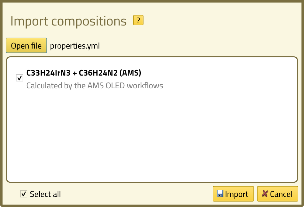 We will start by importing the composition of the emissive layer.