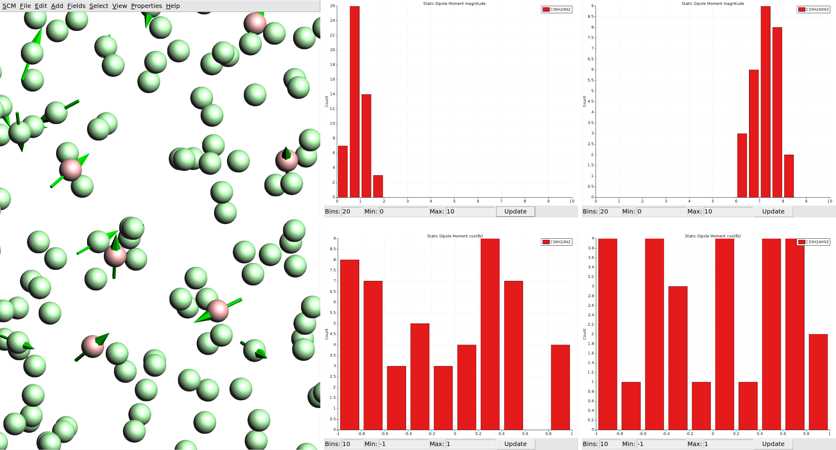 With the limited number of molecules we calculated per species, our statistics are not good enough to say much about a possible anisotropy of the dipole moments. If such spatial properties are desired, it is recommended to run calculations on all molecules in the morphology. (For comparison you can load the HDF5 files from the material database, which include data for all molecules.)
