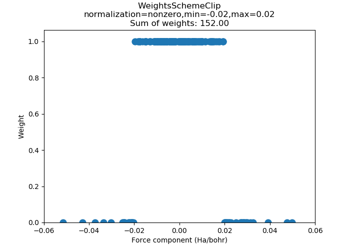 # the weights for force components smaller than -0.03 Ha/bohr or bigger than 0.03 Ha/bohr become 0