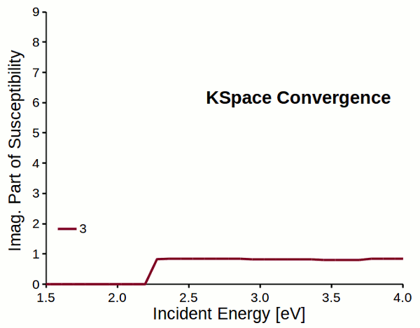 Fig. 5 Reciprocal space sampling convergence of imaginary part of susceptibility for a dihydrogen chain.¶