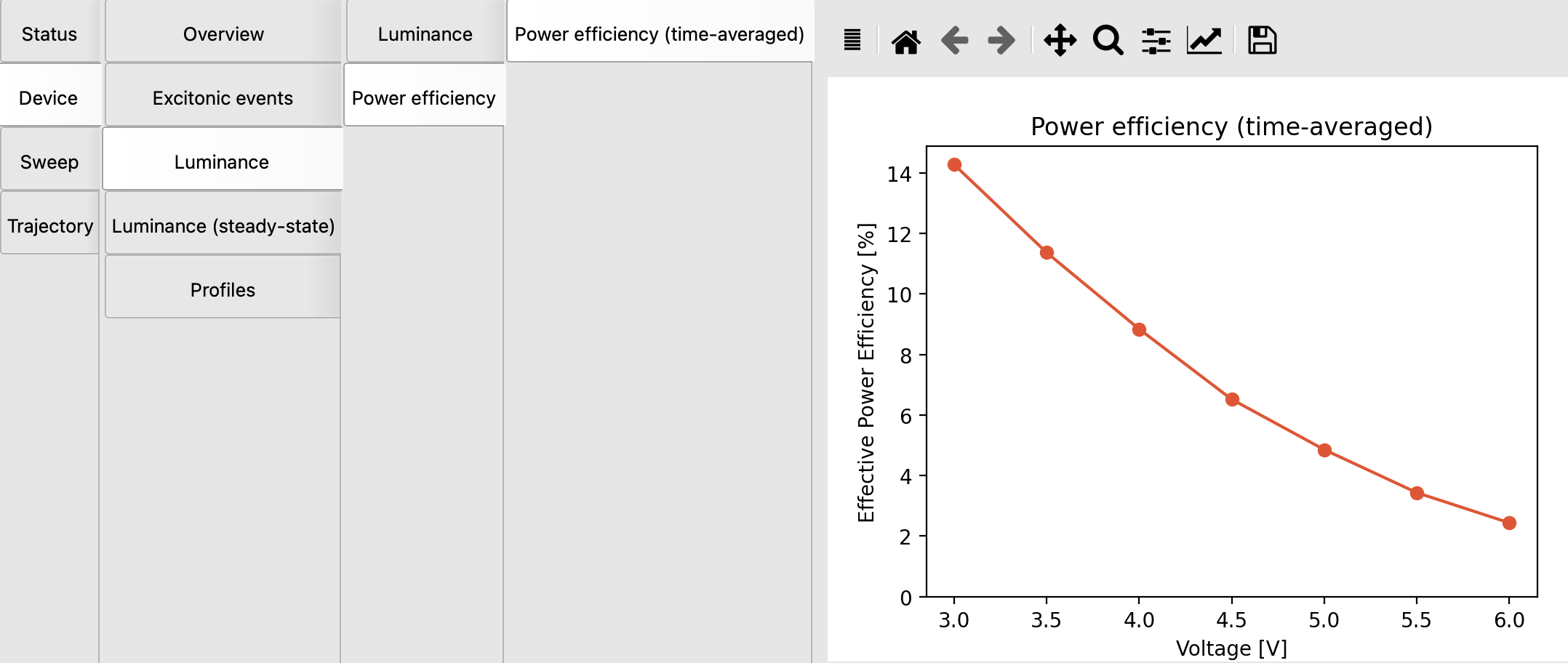 Finally you can consider the important trade-off between luminance and efficiency in the Device → Luminance panel.
