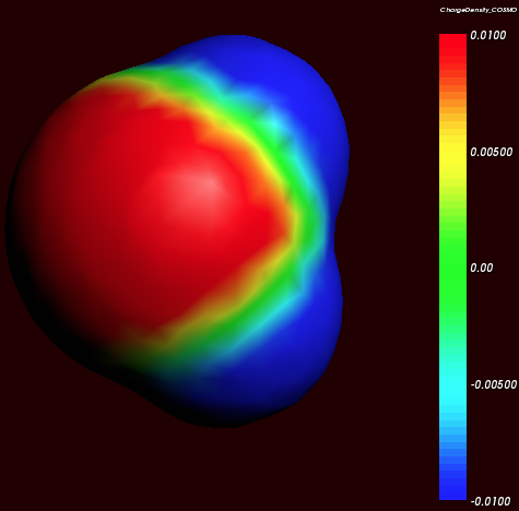 Cosmo charge density on the COSMO surface of water (picture made with AMSview).