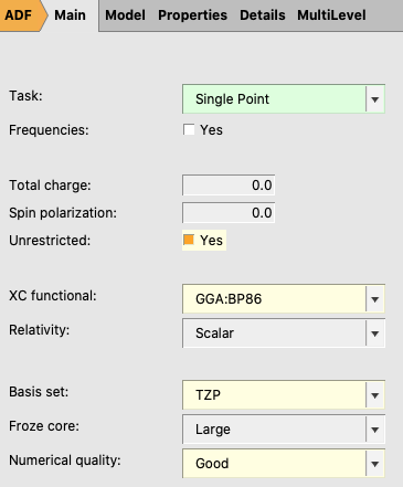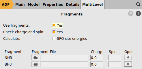 If you simply optimize a H3N-BH3 complex with ADF, the printed bond energy is not calculated from the above equation. Instead, it is calculated with respect to spherically symmetric spin-restricted atomic fragments. See more below.