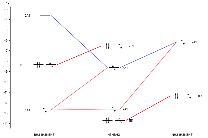 in which ENH3 and EBH3 are the energies of the optimized reactants, and EH3N-BH3 is the energy of the optimized complex.