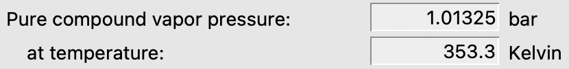 A binary mixture is calculated with input data for the pure compound vapor pressures. These can be, for example, experimentally observed pure compound vapor pressures. Note that the calculated partial and total vapor pressures will now depend on these input pure compound vapor pressures.