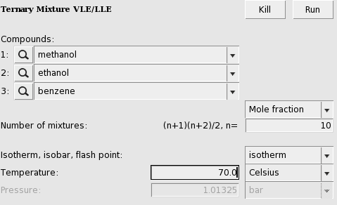 In this example, we use the ternary system water (1) + ethanol (2) + benzene (3).