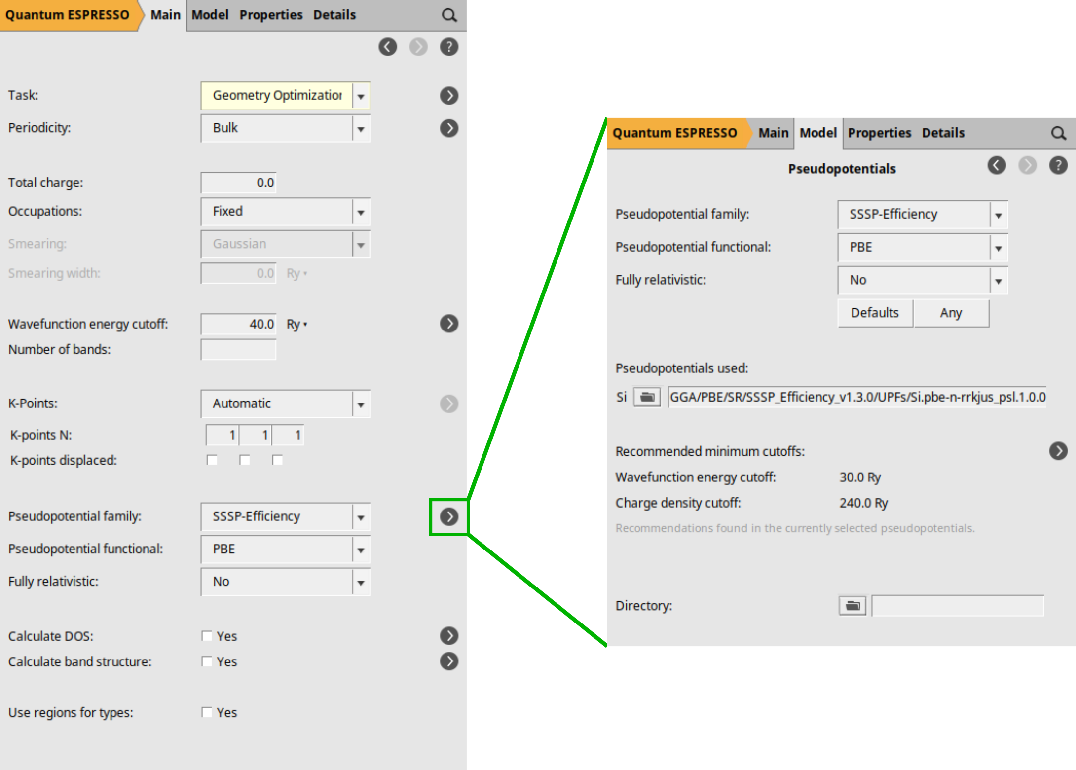 button located to the right of the Pseudopotentials family, you will be directed to the Pseudopotentials selection details.
