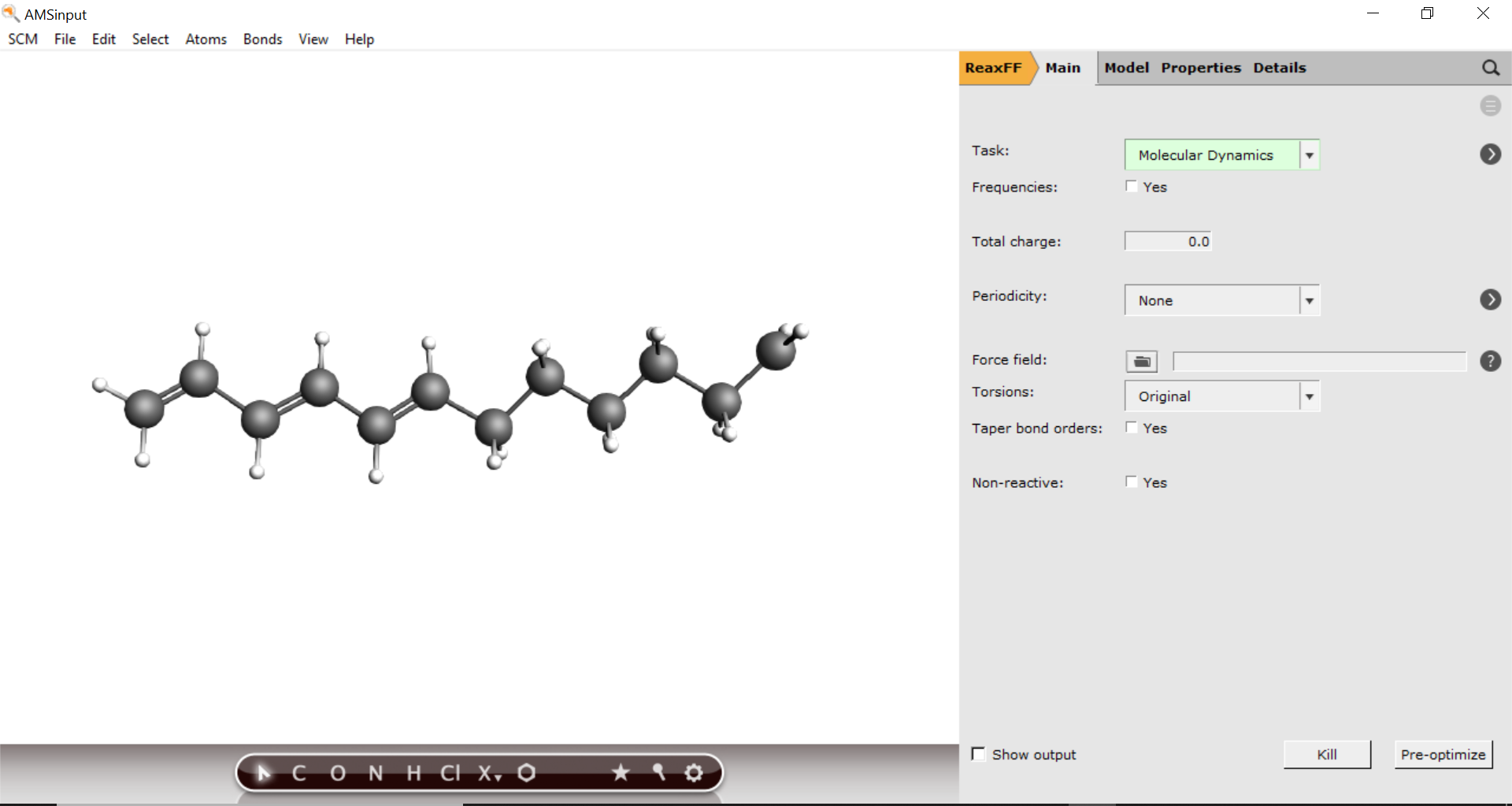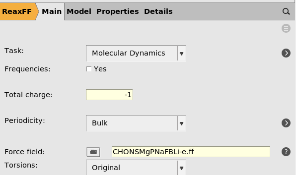Now, only the general ReaxFF and MD settings need to be setup.