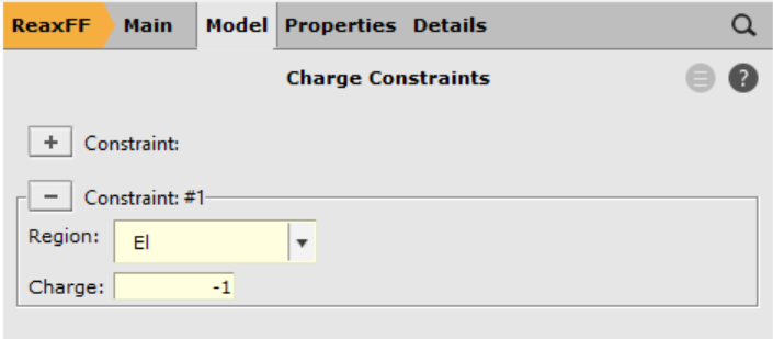 Using the newly created region (El), define a charge constraint that will ensure the electron particle remains its charge of -1 throughout the charge equilibration scheme