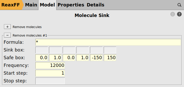 As a last step, we enable the molecule sink to remove any stray particles from the model.