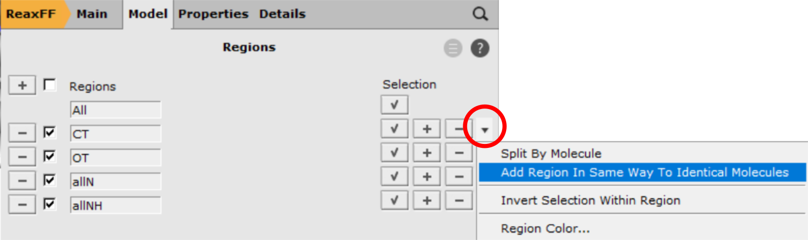 If you have multiple identical molecules, the region can be copied over in the Regions panel using the ‘Apply To Identical Molecules’ option from the dropdown menu on the right.