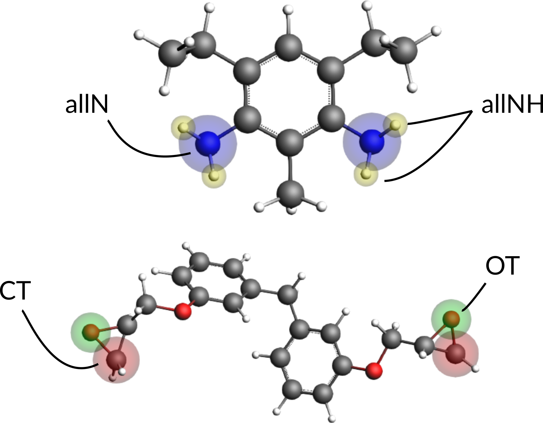 It is possible to distinguish atoms depending on their chemical environment, e.g. the terminal C-atom of the epoxy group, but the information needs to be provided via the regions model of ReaxFF by the user. To distinguish the terminal C-atom from all other C-atoms in the system, a CT region needs to be setup: