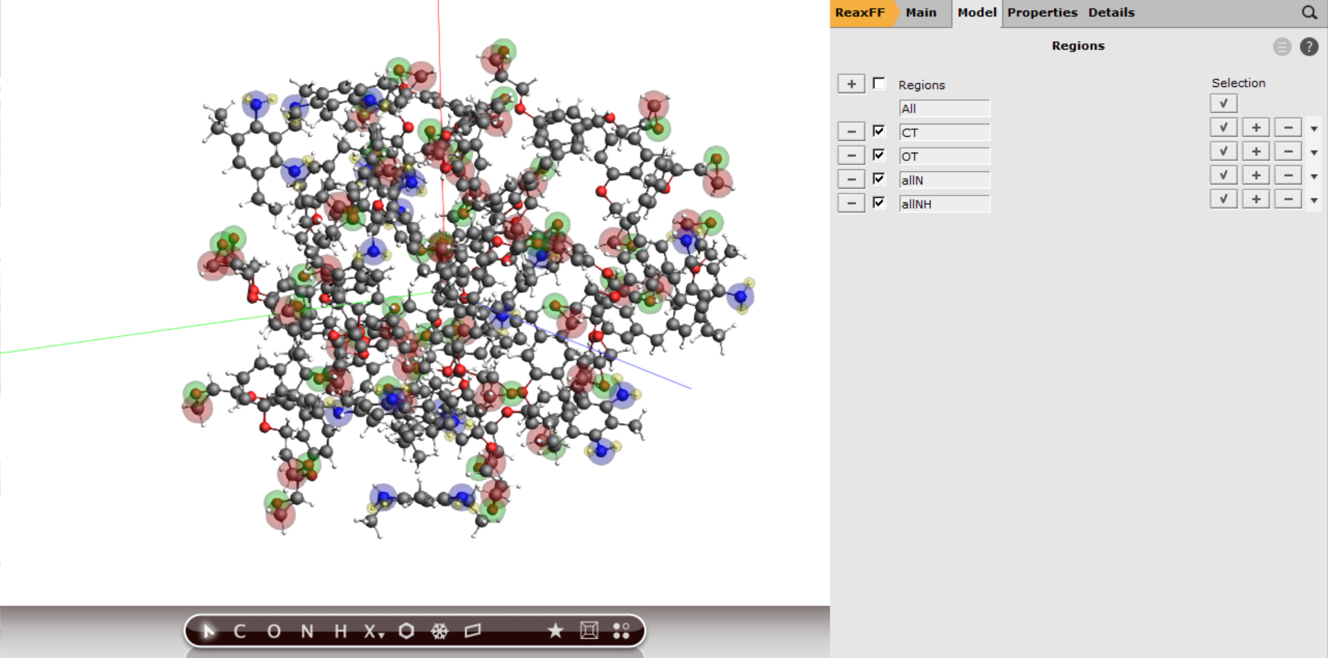 Now the subset of terminal C-atoms can be distinguished via referring to the region CT as we’ll see later. The other regions are consisting of all N-,O- and H-atoms. To set up a region with all N-atoms: