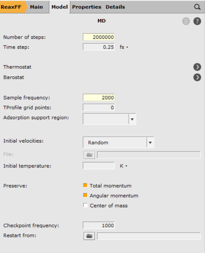 here to download the .xyz file tetra_epoxy.xyzBefore setting up the strain rate, start with the general molecular dynamics settings. Begin by selecting a force field
