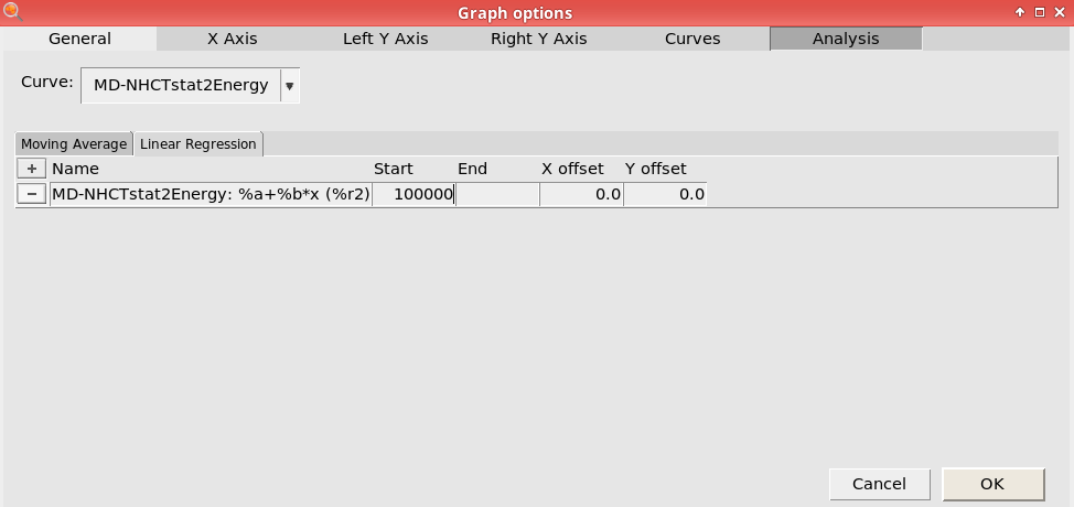 This will perform linear fit starting from 100,000 fs. Here, we consider the first 100,000 fs to be part of the equilibration period.